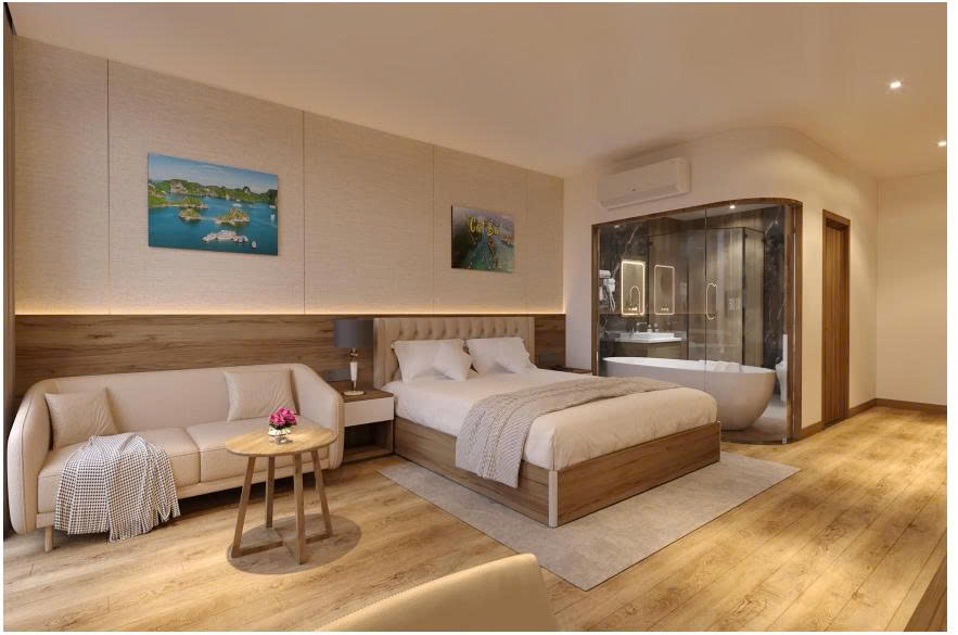 ✔ Không gian rộng rãi, thiết kế sang trọng✔ Bồn tắm thư giãn sau một ngày khám phá Cát Bà