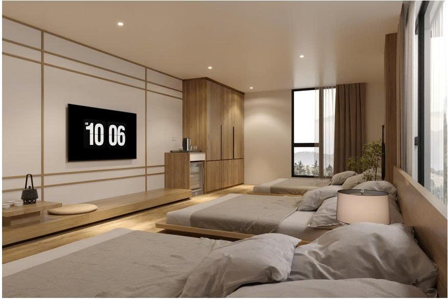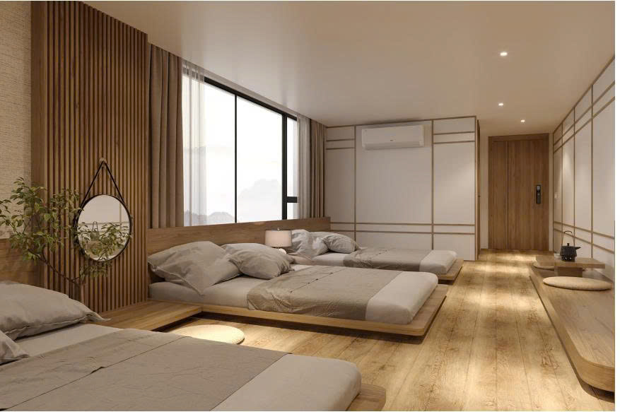 Family Triple Mountain View – Japanese Style tại Cat Ba Vista Hotel là lựa chọn lý tưởng cho gia đình và nhóm bạn mong muốn không gian rộng rãi, yên tĩnh và gần gũi thiên nhiên. Phòng được thiết kế theo phong cách Nhật Bản tối giản, đề cao sự thư giãn, gọn gàng và cảm giác cân bằng trong từng chi tiết.