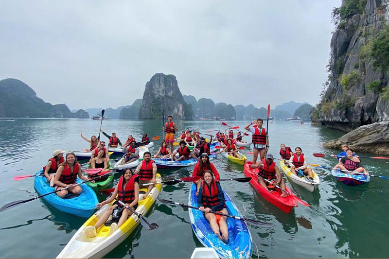 - Tiếp tục hành trình trên biển tới vịnh Lan Hạ và chèo thuyền kayak xuyên qua hang Tối, hang Sáng khám phá những vòm đá vôi tuyệt đẹp mà thiên nhiên ban tặng.